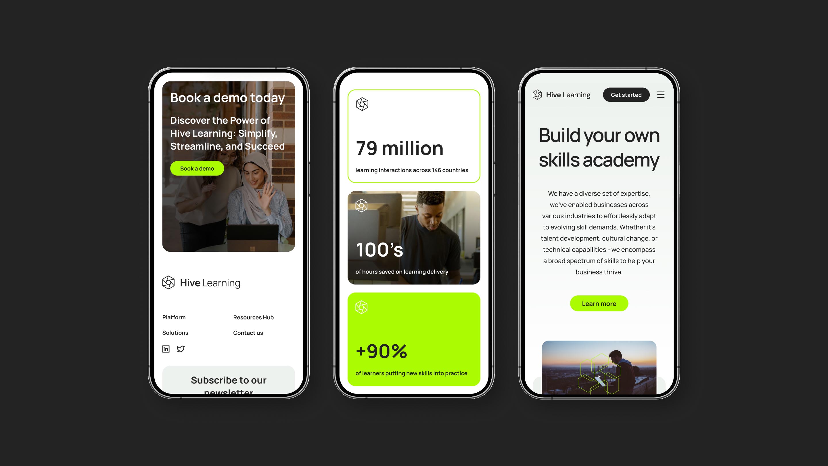The refreshed identity gave Hive Learning a clearer, more confident presence across its platform and communications. By anchoring the brand in a single, scalable visual idea, the system became easier to apply, easier to evolve and more recognisable at scale. The work helped align Hive’s visual language with the sophistication of its learning product, creating a brand that feels focused, modern and built to support future growth.