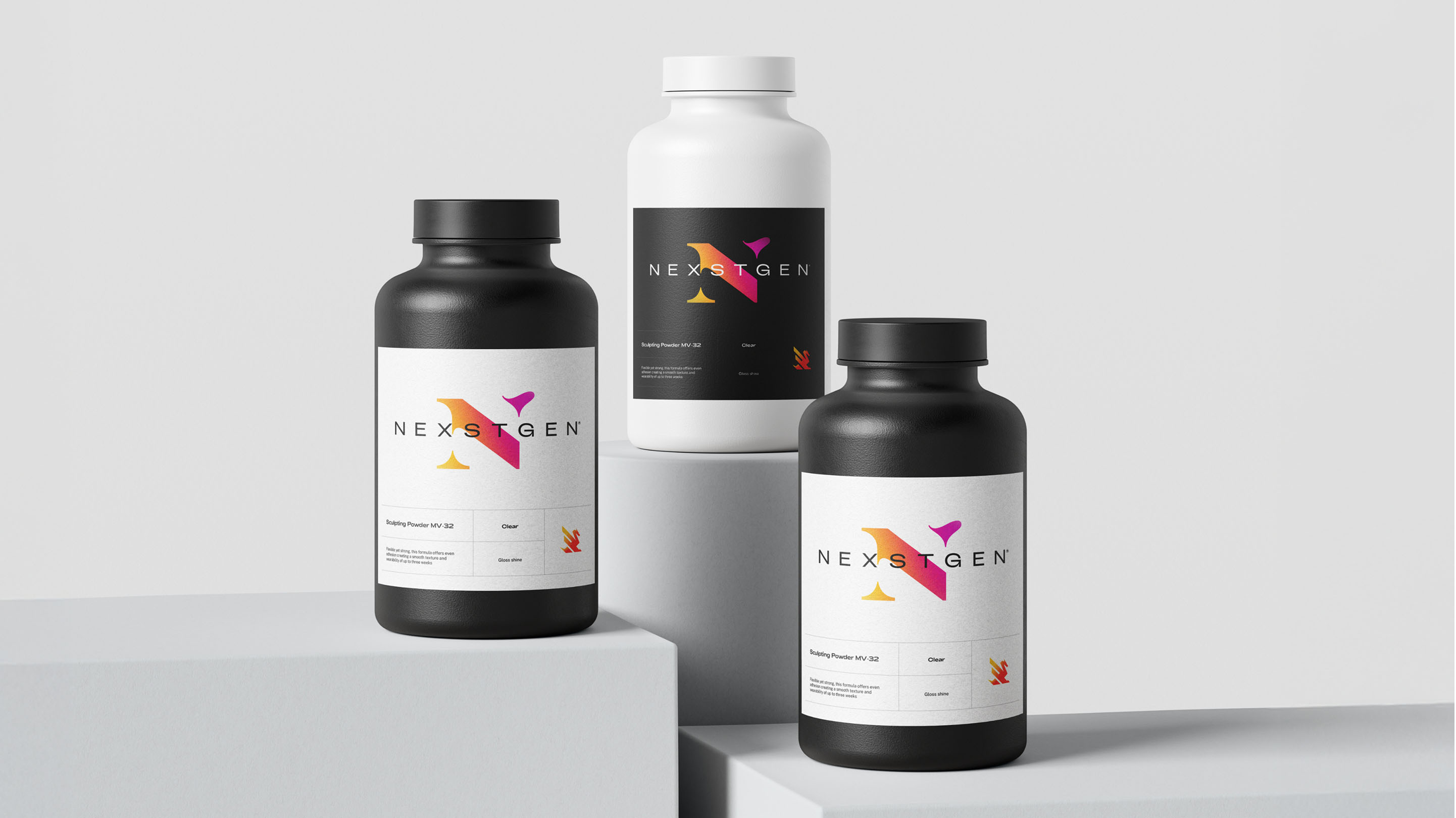 NEXSTGEN operates at the intersection of chemical precision and commercial cosmetics. They develop and supply premium acrylic powders and monomers to nail-supply distributors, private-label cosmetic brands and wholesale partners across the USA and beyond. The challenge was to build a brand identity that balances two very different worlds: the rigorous, technical ethos of a chemical manufacturer and the expressive, aesthetic sensibility of a cosmetics brand. The identity needed to speak credibly to salons, nail-tech businesses and wholesale buyers, signalling performance, safety and quality — while also feeling fresh, modern and ownable in a saturated beauty market.